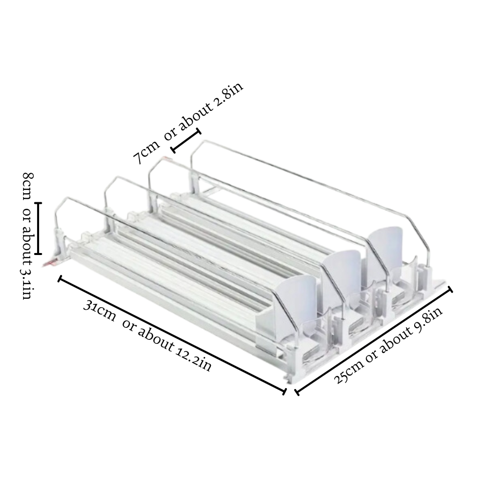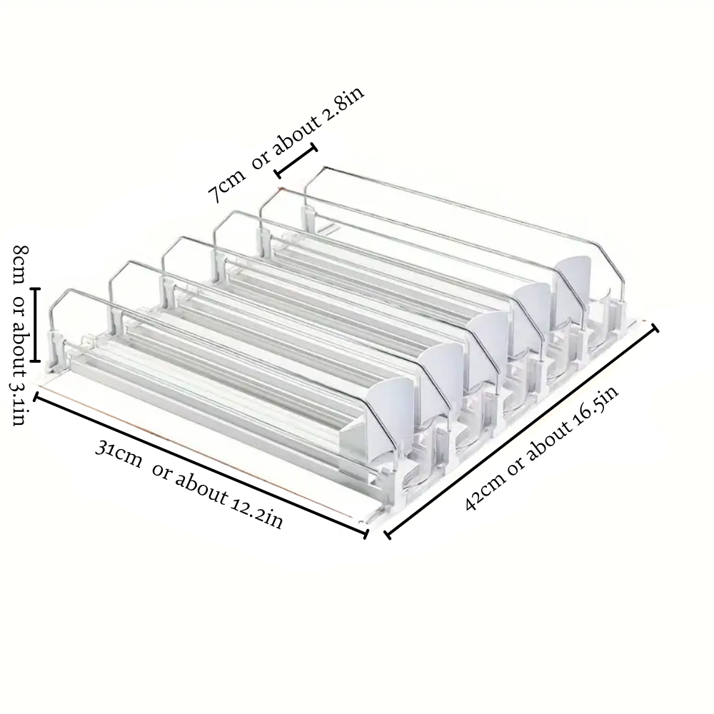 Introducing the Beverage Pusher Drink, a sleek and practical solution for organizing your refrigerator. This beautifully designed self-propelled soda can dispenser ensures your drinks are always within easy reach, thanks to its upgraded double-layer partition board and positioning buckle.
