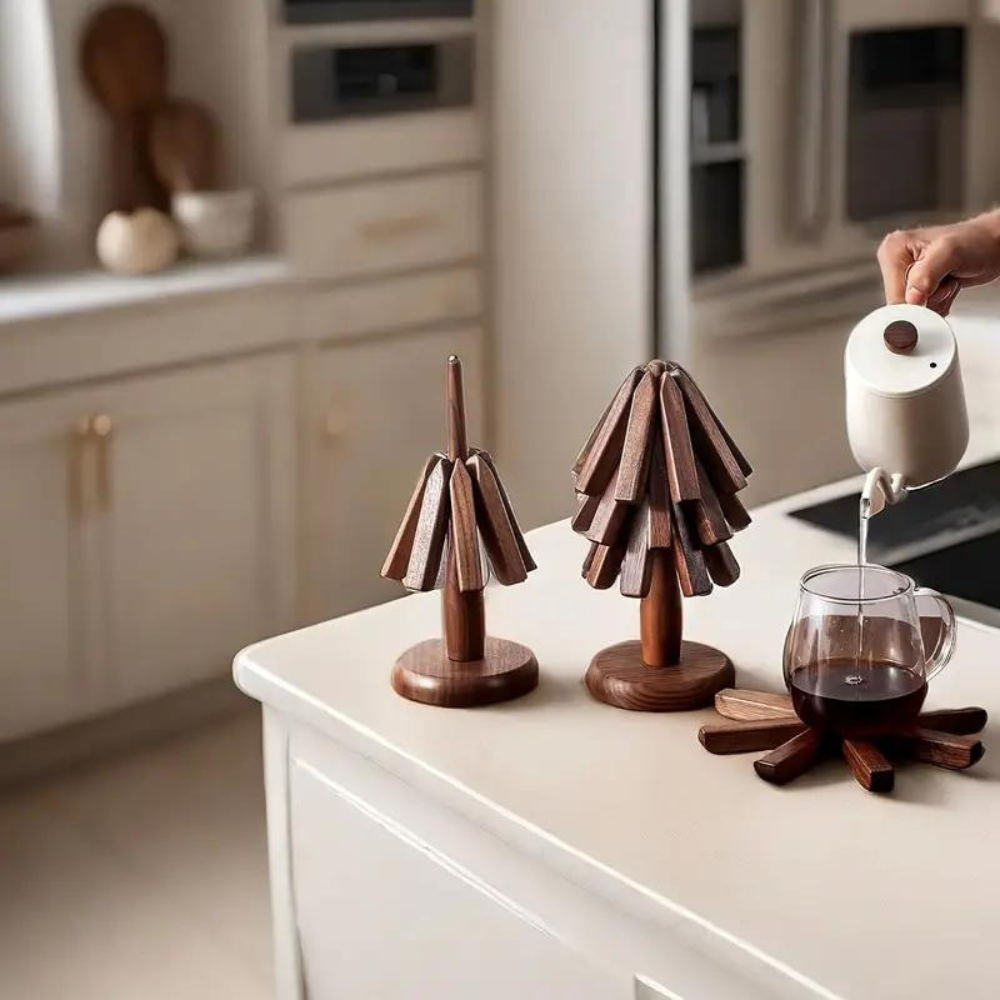 • The package comes with 1 Wooden Tree Coaster Set; 3 coasters and a holder for them.